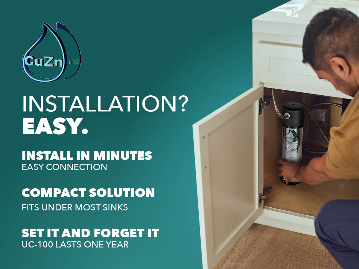 The UC-100 requires virtually no maintenance and installs in minutes, hooking up to the cold water supply of your kitchen sink. When you turn on the cold water side of your kitchen sink, pure CuZn filtered water will be dispensed on demand for all your cooking and drinking needs.