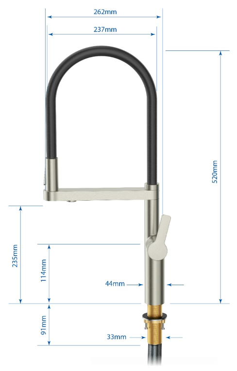 - Simple operation - single handle and button to switch water source