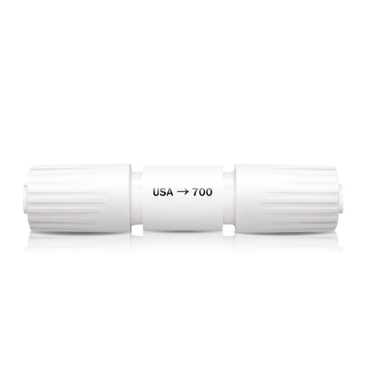 FLO-700-QC Flow Restrictor for Reverse Osmosis SystemsThe Flow restrictor works with the Reverse Osmosis membrane to keep a perfect ratio of water flow to the drain and filtered water production flow. When waste water jam into the restrictor there will be no waste water outflow and can cause RO membrane plugging. When the waste water flow is too big, the flow restrictor can’t produce drinking water. Our FLO-700 ¼” Quick Connect fitting is the replacement part for Reverse Osmosis systems with membrane range from 65 Gallons per Day (1:4) to 135 Gallons per Day (1:2). |