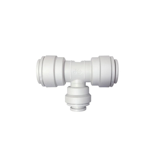 John Guest Reducing Tee 3/8" x 3/8" Tube OD(ends) x 1/4" Tube OD(branch) Polypropylene White (PP30121208W)