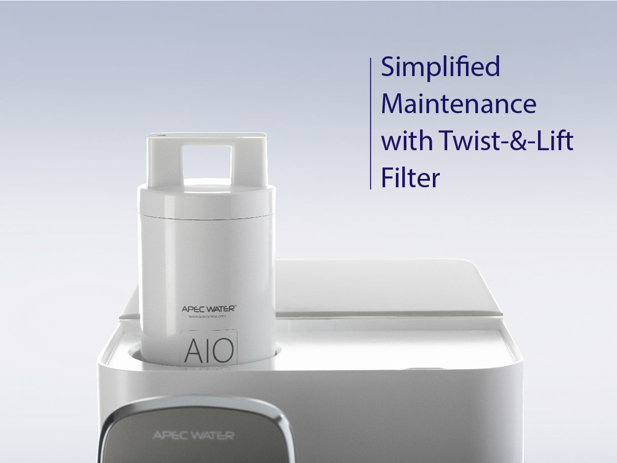 Maintenance cannot be any simpler than this countertop reverse osmosis water system. Turn off the power, twist and lift the filter, then insert and twist the new filter into the slot. For a complete tutorial, checkout the video in the specification tab.